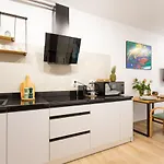 Luxurycity Apartment With Terrace lägenhet ligger i Wrocławs Krzyki distrikt och har en solig uteplats. Det finns en kokvrå med vattenkokare, diskmaskin och kylskåp på detta boende.